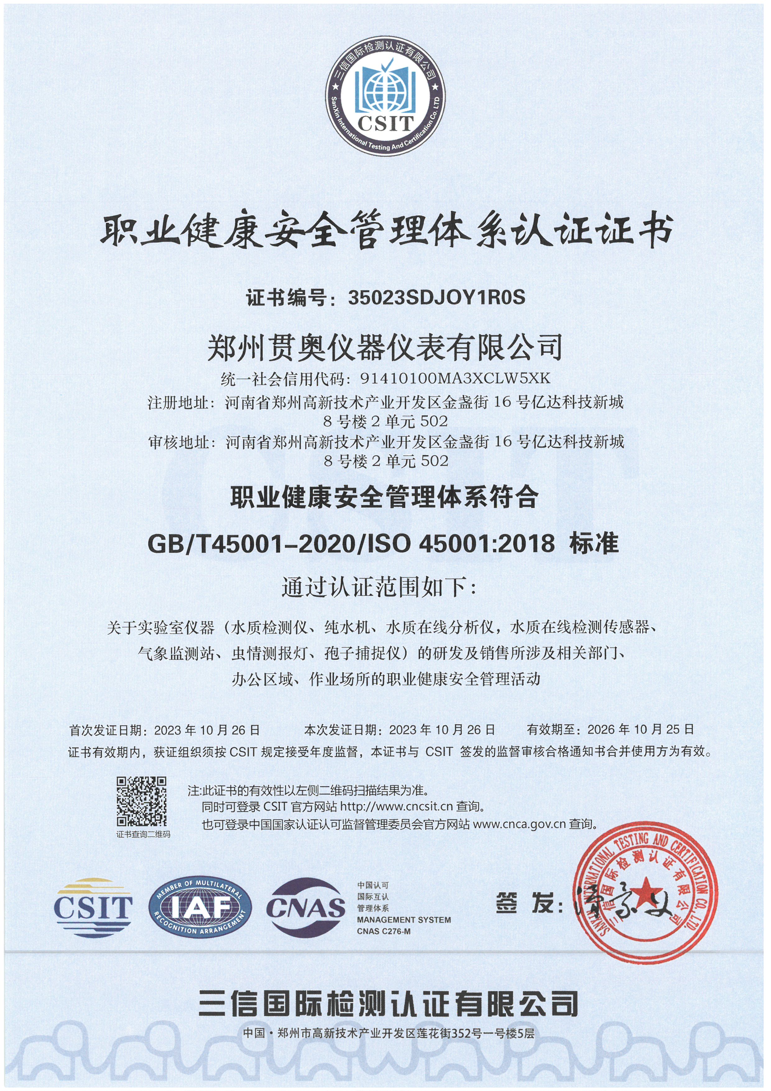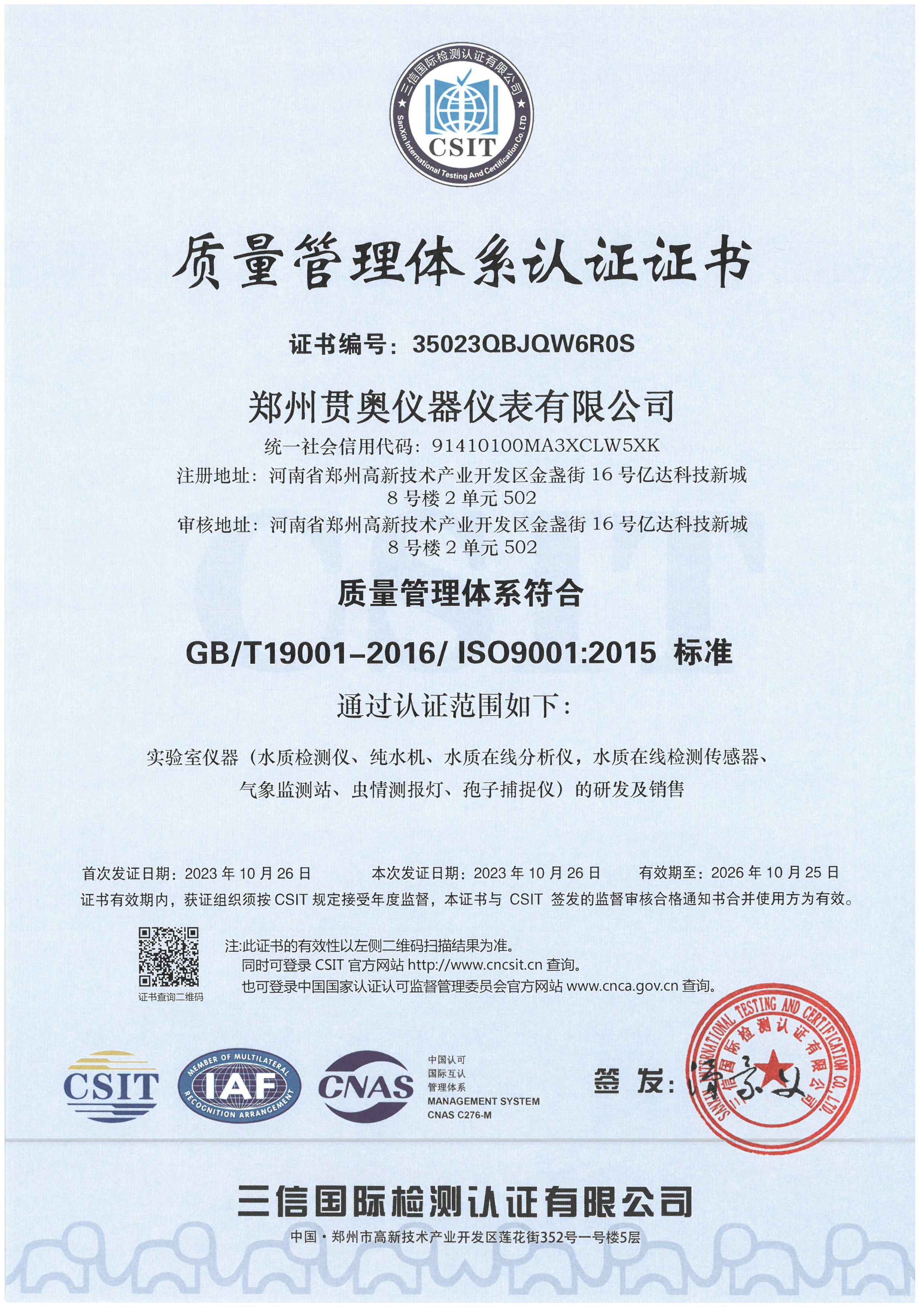 貫奧儀器位于鄭州高新技術(shù)產(chǎn)業(yè)開發(fā)區(qū),是高新技術(shù)企業(yè)、行業(yè)AAA級信用企業(yè),已通過GB/T19001:2016質(zhì)量管理體系認證、GB/T24001:2016環(huán)境管理體系認證和GB/T45001:2020職業(yè)健康安全管理體系認證,擁有多項證書,產(chǎn)品已通過河南省電子信息產(chǎn)品質(zhì)量監(jiān)督檢驗院檢測,并出具了相關(guān)檢驗報告,我們以雄厚的研發(fā)實力、過硬的產(chǎn)品質(zhì)量、完善的售后服務(wù)為客戶提供分析檢測技術(shù)解決方案,擁有過硬的分析儀器生產(chǎn)技術(shù)和整體的水質(zhì)監(jiān)測解決方案。