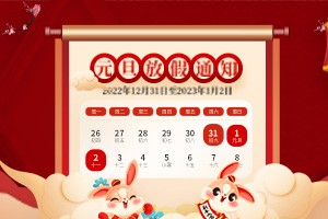 2023年元旦佳節(jié)將至,首先向全體員工致以節(jié)日的問候,為了大家能度過歡樂、祥和、平安的節(jié)日,特提醒全體人員注意以下幾點(diǎn): 1.2023年元旦放假時(shí)間:自2022年12月31日至2023年1月2日,放假3天。2023年1月3日(星期二)照常上班。 2.各部門在節(jié)前要組織一次安全檢查,杜絕一切安…