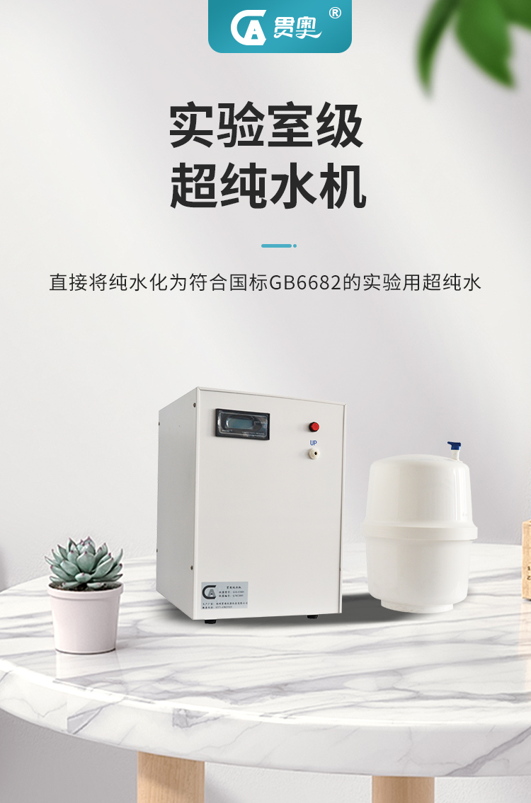 GA系列實驗室純水機以反滲透和深度離子除鹽為制水工藝基礎,設備直接連接城市自來水,可制備達到國標GB6682-2008一級水質的實驗用超純水。